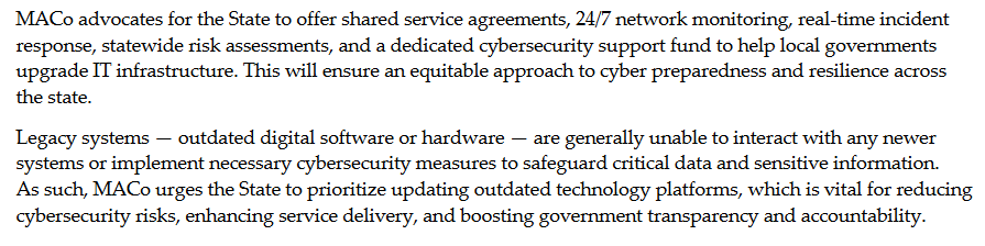 MACo had invested deeply in the work group process that eventually led to the multiple bills, and was engaged throughout the session (and its many travails, for these bills in particular) to advocate for improved resources and support for local governments facing online threats.