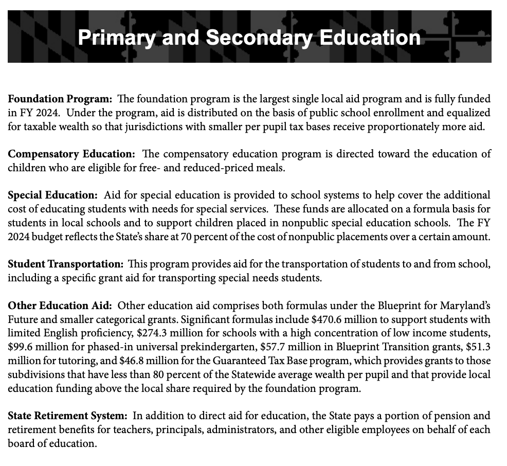 The governor’s proposed budget includes record funding for local health departments, which grows to nearly $116 million, a $41 million increase from fiscal 2023. In addition, the proposed budget includes $167 million in formula-driven funding for the Disparity Grant program for low-wealth jurisdictions — a $17 million increase from fiscal 2023.
